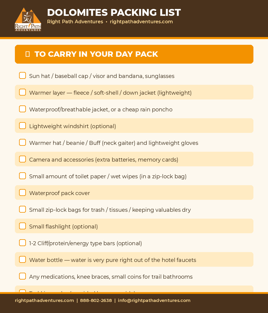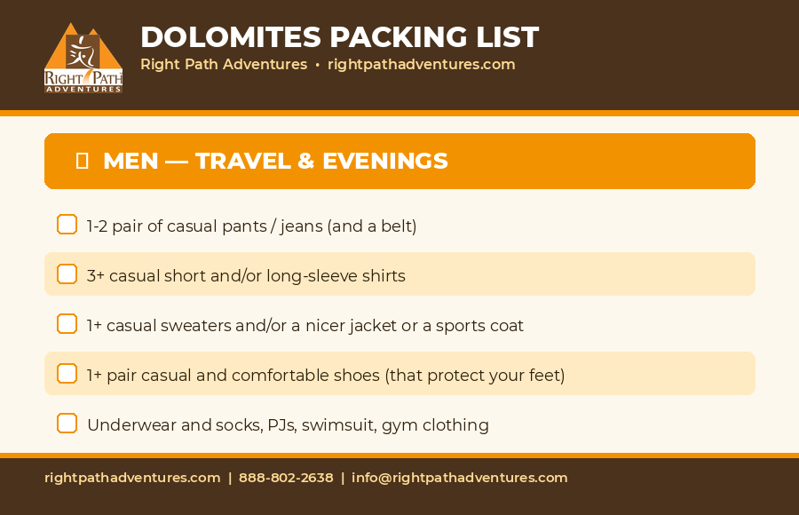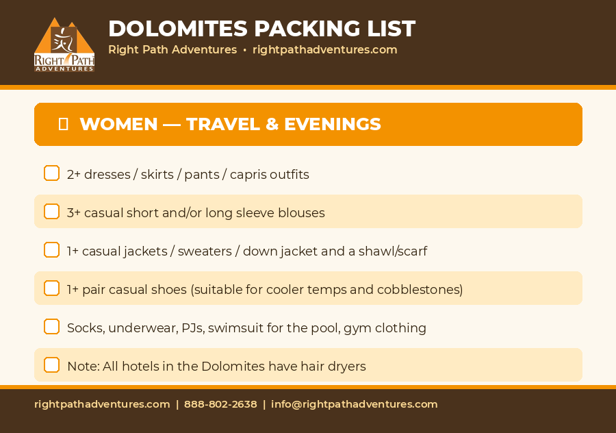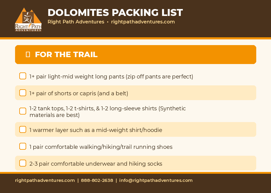 Dolomites Packing List